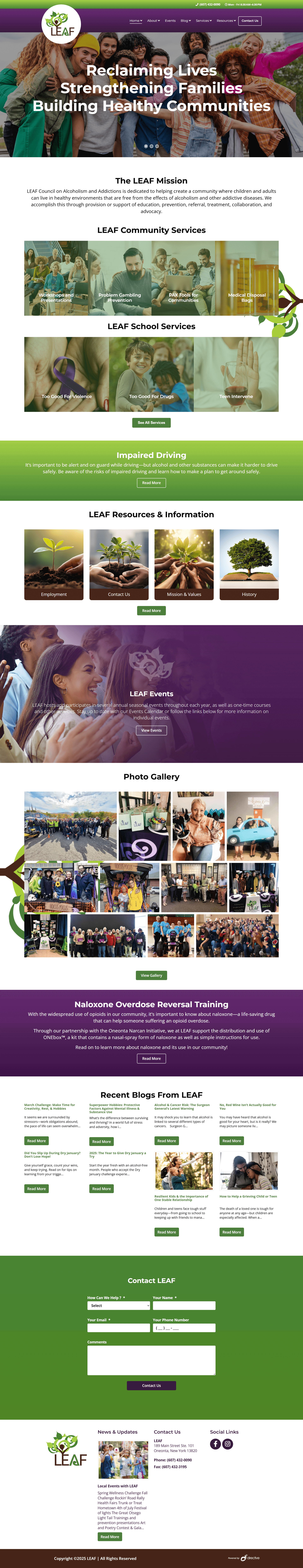 LEAF is committed to reclaiming lives, strengthening families, and building healthy communities. Our organization works to support a community where children and adults can thrive free from the effects of alcoholism and other addictive diseases.